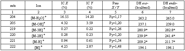 The heat of formation by molecule (ΔH) of cations resulted through fragmentation of two epimer alcohols, colons 6 and 7, were calculated by a Computational Quantum Chemistry method.